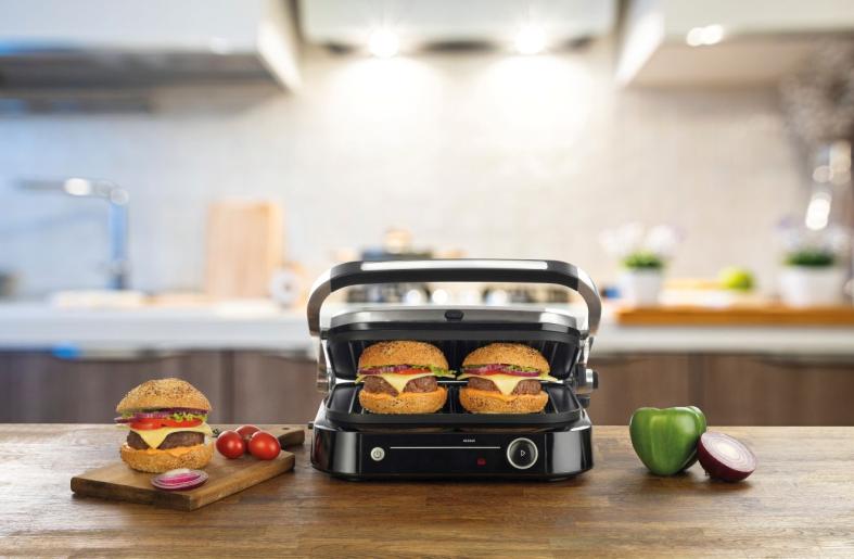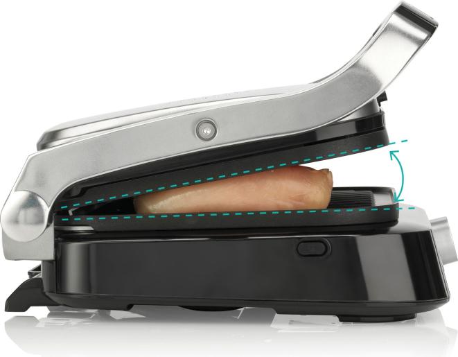 این دستگاه امکان تنظیم صفحات را برای شما فراهم میکند ، همچنین میتوانید صفحه بالایی را کاملاً به عقب تا کنید و یک سطح کبابپزی دوم، به عنوان یک گریل باز، ایجاد کنید.